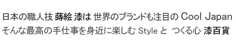 けれども 現代では、JAPANが「漆」や「漆芸」を意味しているとか、英国の辞書にそれらしく書いてあるとか、色々言われ ていますが、海外の人たちは???です。